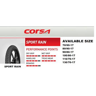 Tayar wet resistance fully grip guranteed avoid slippery. Corsa Sort by Default Name A - Z Name Z - A Price Low. Product corsa sport rain 90-80-17 46s tubeless red.